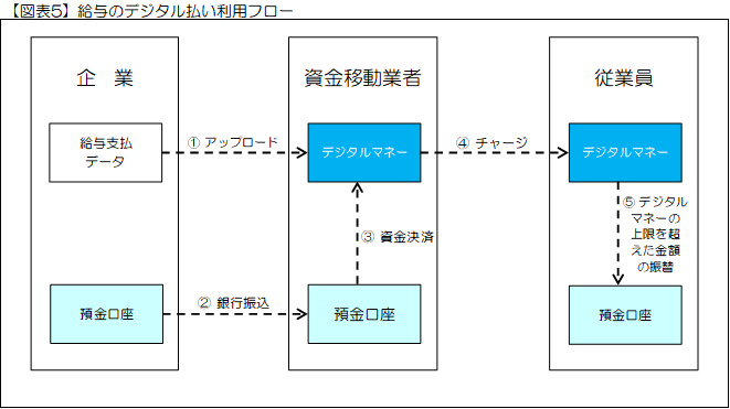 【図表5】に参考として「給与のデジタル払い」の利用フローを示しますが、導入によって期待される効率化やイメージアップといった企業のメリットと、福利厚生を含めた従業員のメリットが検討されて、利用の判断が行なわれることになります。普及についてはこれからという状況ですが、給与計算ソフトの対応も進められ、セルフレジ等の店舗設備やキャッシュレスサービスの機能の拡充によって、「給与のデジタル払い」を利用するメリットが拡大すれば、キャッシュレス決済のさらなる進展の後押しとなる可能性が高いと考えられます。