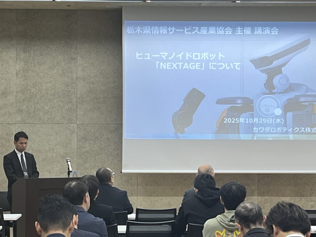 テーマ「人とロボットの協働が創る未来ヒューマノイドロボット「NEXTAGE」について」と題し、カワダロボテイクス株式会社の影山雅和様に講演を頂きました。